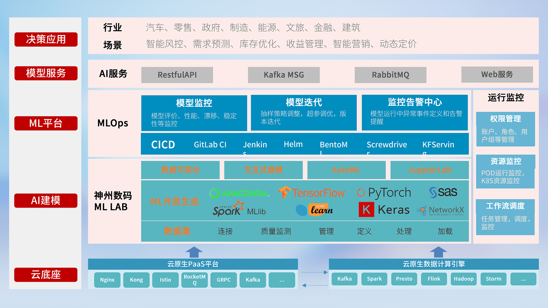 数据+模型双引擎驱动,,面向智能服务场景,,,快速灵活利用AI技术,,,支持业务决策,,,助力企业智能化转型破局。。